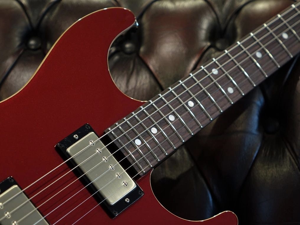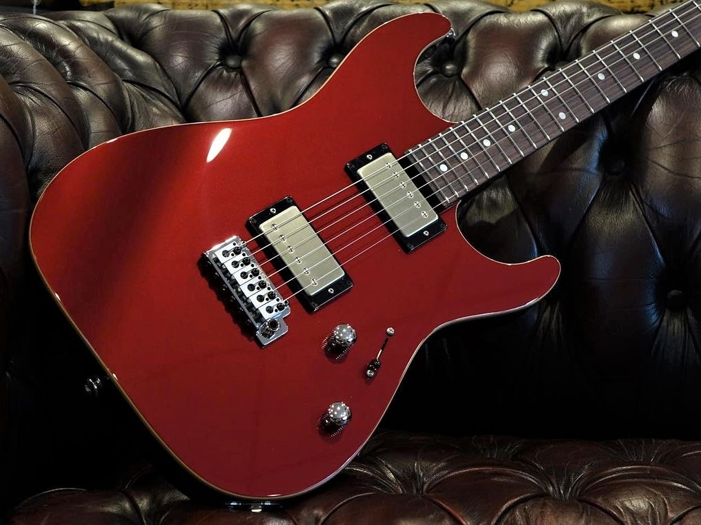 This sleek guitar has a chambered mahogany body, tremolo and two Thornbuckers. A beautiful revealed wood binding finishes the overall impression of this beauty. Available in Black, Gold or Garnet Red Metallic.