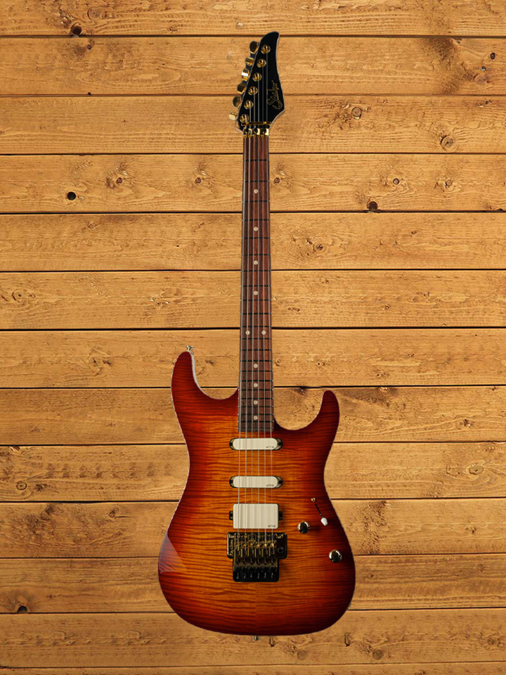 All of these guitars are made from an African Okoume body, with a figured Maple top, and available with either Floyd Rose or Gotoh 510 tremolo. All are equipped with EMG SA/SA/85 pickups, and a black gloss headstock. These guitars are the 80’s revisited, and if you once fell in love with that era, where Pensa Suhr, Valley Arts and other great builders were turning out great guitars, its impossible not to love these instruments from John Suhr & Co.